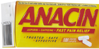 Anacin is a pain reliever intended for the temporary relief of minor aches and pains. Anacin is a combination salicylate and stimulant. It works by blocking several different chemical processes within the body that cause pain, inflammation, and fever. It also reduces the tendency for blood to clot.